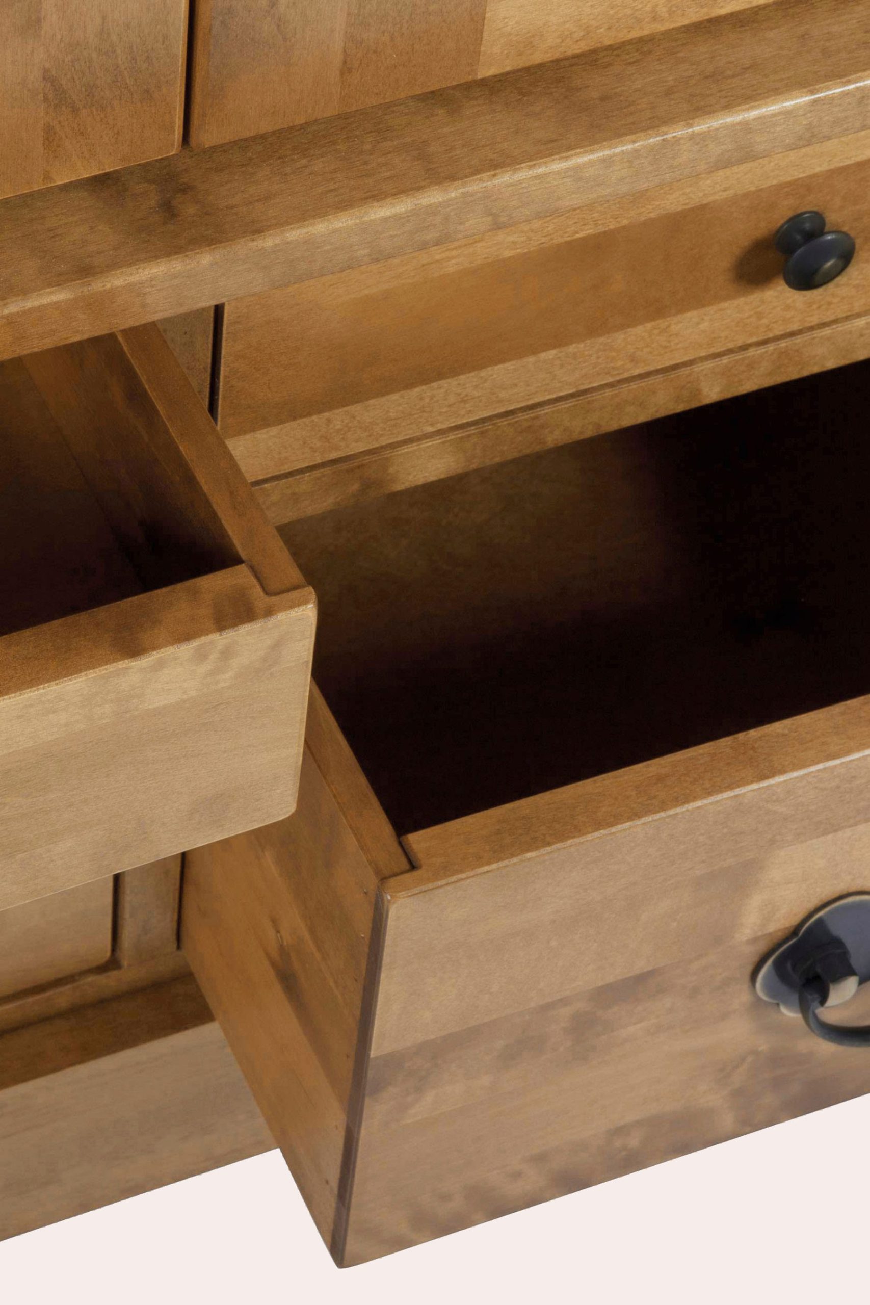 • Timeless Design: The Garrat range features classic, rustic styling with traditional detailing, making it a perfect fit for both period homes and more contemporary interiors that seek a heritage touch. • Solid Wood Construction: Crafted from high-quality solid wood, the Garrat range offers robust durability and strength, ensuring that each piece stands the test of time. • Warm, Rich Finishes: Available in finishes like chestnut and honey, the Garrat collection adds warmth and richness to any room, creating a cozy and inviting atmosphere. • Antique-Inspired Detailing: From dovetail joints to brass hardware and vintage-inspired handles, the Garrat range is full of subtle, antique-style details that enhance its timeless charm. • Ample Storage Solutions: With a variety of pieces, including chests of drawers, sideboards, and bookcases, the Garrat range provides generous storage space for all your needs, combining practicality with classic elegance. • Versatile Appeal: Whether used in a living room, bedroom, or study, the Garrat range is versatile enough to complement a range of interior styles, from traditional to transitional. • Hand-Finished Quality: Each piece in the Garrat collection is hand-finished, giving it a unique character and ensuring the highest standard of craftsmanship. • Functional and Stylish: Blending beauty with practicality, the Garrat range offers functional features such as spacious drawers, cabinets, and shelves, while maintaining a refined, polished look.