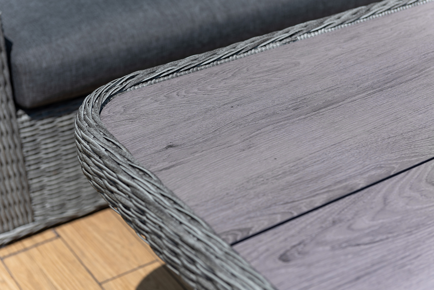 The Lifestyle Garden Martinique range blends premium materials to offer both elegance and durability for outdoor living. Its Duraboard® tabletops, crafted from a mix of eucalyptus sawdust and polyethylene resin, are visually appealing and highly resistant to UV rays, scratches, and daily wear. These low-maintenance surfaces retain their flawless appearance over time, making them a sustainable choice for outdoor use.