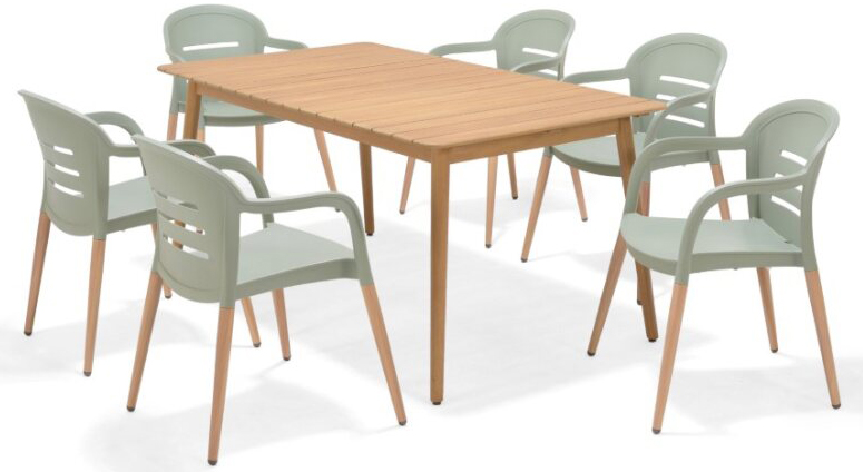 This Set comprises: • 1 x Nassau Dining Table (W-160cm D-90cm H-74cm) • 6 x Onyx Chairs (W-58cm D-61cm H-87cm)