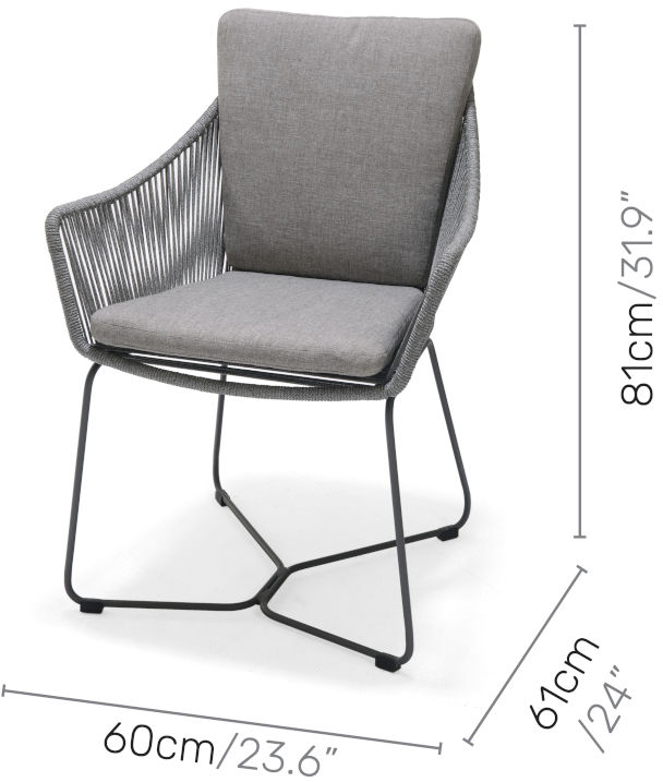 • High Pressure Laminate • Galvanised Steel Chair Legs • Olefin Fabric • Marine Grade Rope