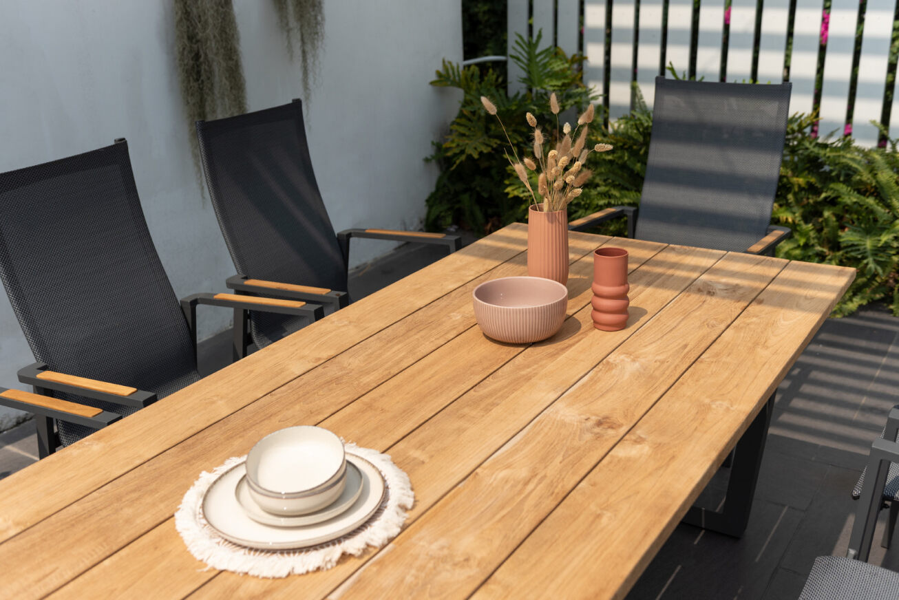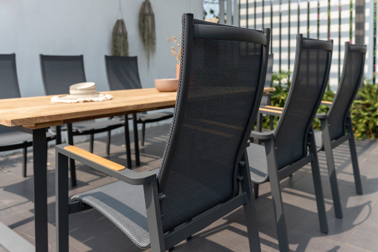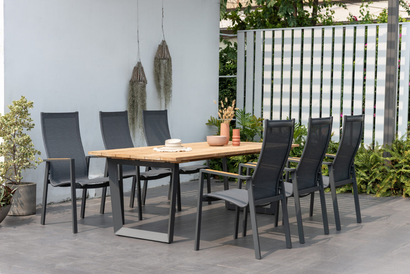 Lifestyle Garden Palau 6 Seat Dining Set The Palau 6 Seat Dining Set by Lifestyle Garden is characterised by contempory design and the combination of modern materials. Sleek, minimum maintenance Aluminium set featuring a teak table top and industry leading Weathernet mesh seats for a versatile construction that ticks all the boxes in outdoor living including resistance to Water and UV rays . So what are you waiting for? Add a touch of modern refinement to your home today and invest in the LifestyleGarden Palau range.