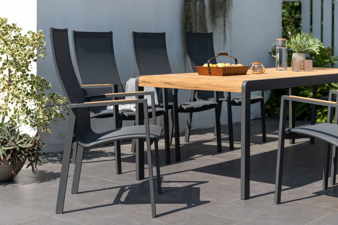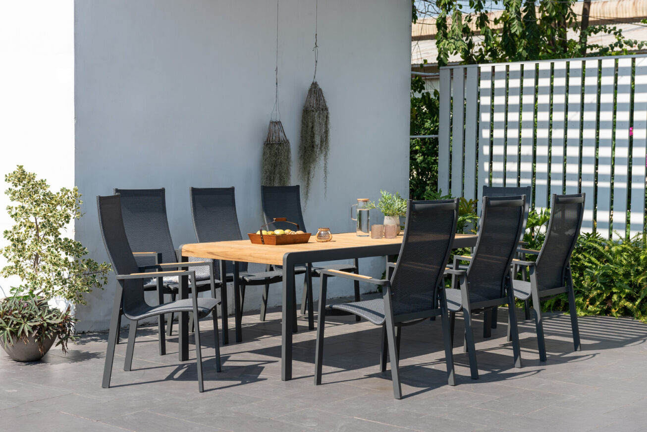 Lifestyle Garden Palau 8 Seat Dining Set The Palau 8 Seat Dining Set by Lifestyle Garden is characterised by contempory design and the combination of modern materials. Sleek, minimum maintenance Aluminium set featuring industry leading Weathernet mesh for a versatile construction that ticks all the boxes in outdoor living including resistance to Water and UV rays . So what are you waiting for? Add a touch of modern refinement to your home today and invest in the LifestyleGarden Palau range. LifestyleGarden®’s AluPrint® is a patented way of printing beautiful wood finishes onto aluminium profiles to lift the look of the material to the next level. Done entirely in-house, this finish adds a natural look to the metal, while maintaining a very low weight and high durability. AluPrint® also allows adds details to the products that adds just that extra touch to the pieces of any outdoor space and allowing for zero maintenance and premium weather resistance.
