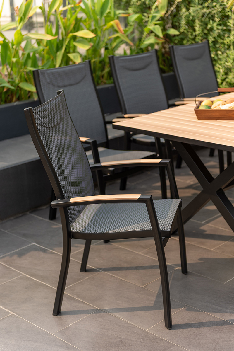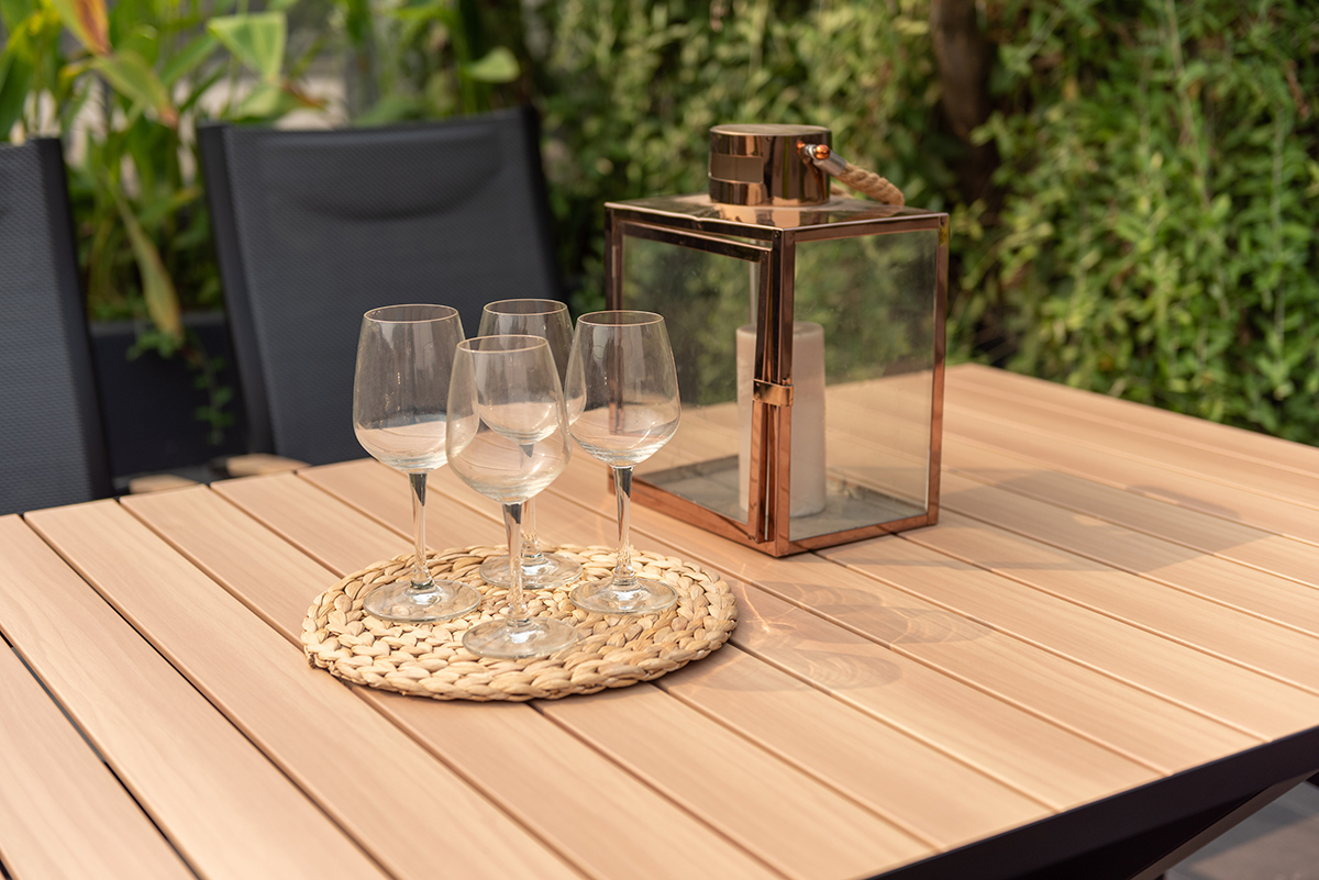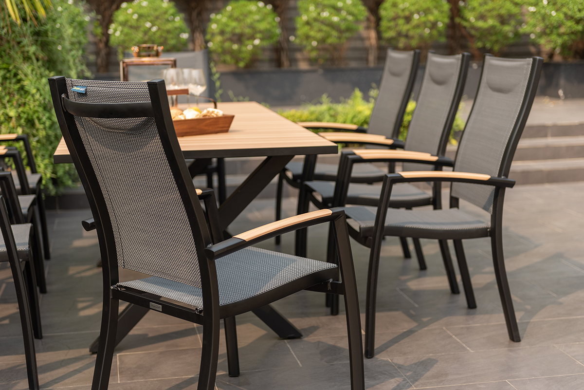 The Panama 8 Seat Stacking Dining Set – Weathernet by Lifestyle Garden is part of their Duraocean range characterised by contempory design and the combination of modern materials. Sleek, minimum maintenance Aluminium set featuring industry leading Weathernet mesh for a versatile construction that ticks all the boxes in outdoor living including resistance to Water and UV rays . So what are you waiting for? Add a touch of modern refinement to your home today and invest in the LifestyleGarden Panama range. LifestyleGarden®’s AluPrint® is a patented way of printing beautiful wood finishes onto aluminium profiles to lift the look of the material to the next level. Done entirely in-house, this finish adds a natural look to the metal, while maintaining a very low weight and high durability. AluPrint® also allows adds details to the products that adds just that extra touch to the pieces of any outdoor space and allowing for zero maintenance and premium weather resistance.