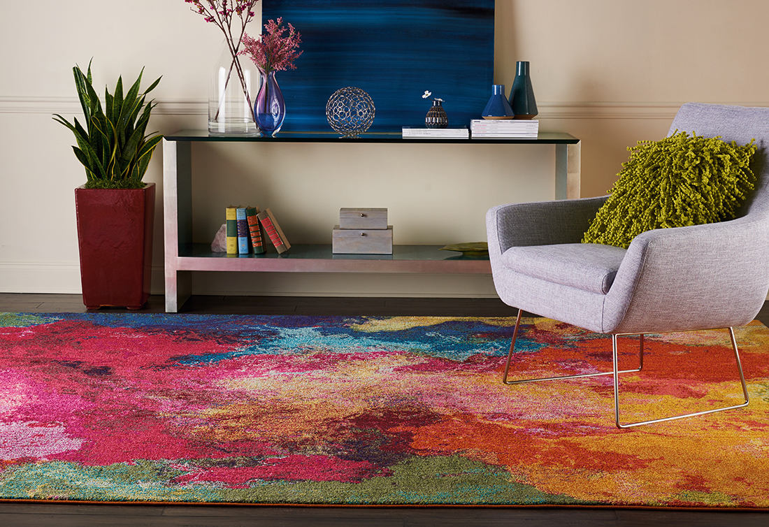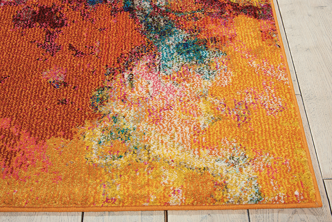 Like gorgeously colorful nebulae, soft cloud-like shapes spread across this Celestial Collection by Nourison area rug. The painterly hues have an ex citing effect of movement as if they are blending on some celestial artists palette.
