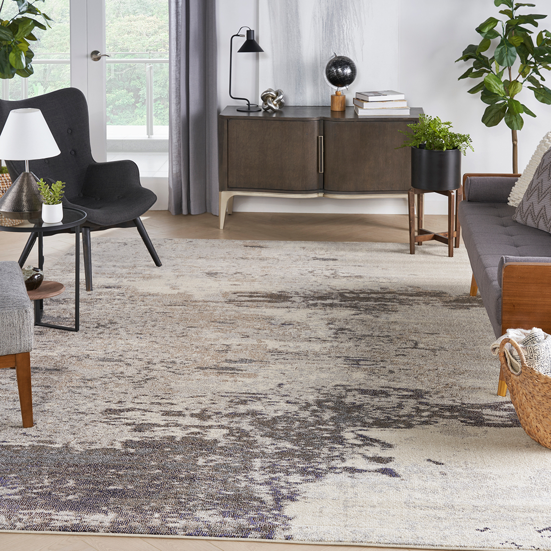 Evoking a feeling of natural stone, this Celestial Collection rug brings the outdoors in. Shades of grey, charcoal, beige and white interplay on this Celestial Collection rug, creating a contemporary design inspired by nature. Silky tex ture and a modern, neutral palette bring casual comfort to any room in your home that needs an ex tra stylish touch.