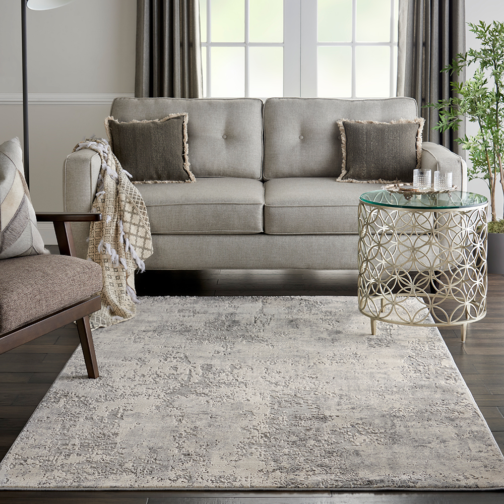 Nourison Rugs – Rustic Textures Rectanglular RUS07 Rug in Ivory Grey Beige – 1.8m x 1.2m