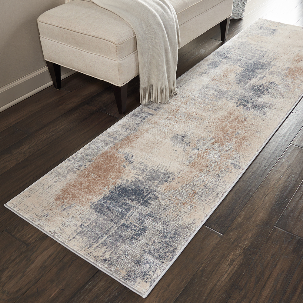 Nourison Rugs – Rustic Textures Runner RUS02 Rug in Beige / Grey – 2.3m x 0.66m