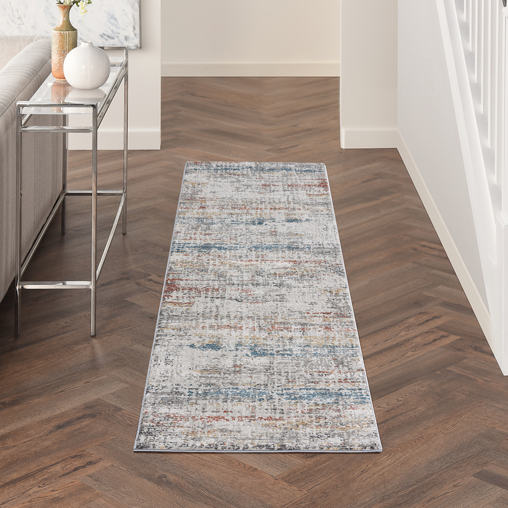 Nourison Rugs – Rustic Textures Runner RUS14 Rug in Grey Multicolour – 2.3m x 0.66m