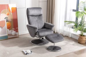 Global Furniture Alliance Key Features: •360 Degree Swivel •Chrome Detail •Easy To Use Recline Mechanism •Footstool Included
