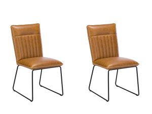 The Pair of Baker Cooper Dining Chairs – Tan feature PU Leather effect upholstery and powder coated aluminium legs with plastic feet protectors to avoid damaging flooring.