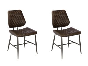 The Pair of Baker Dalton Dining Chairs – Dark Brown feature a diamond stitch PU Leather effect upholstery and powder coated aluminium legs with plastic feet protectors to avoid damaging flooring.