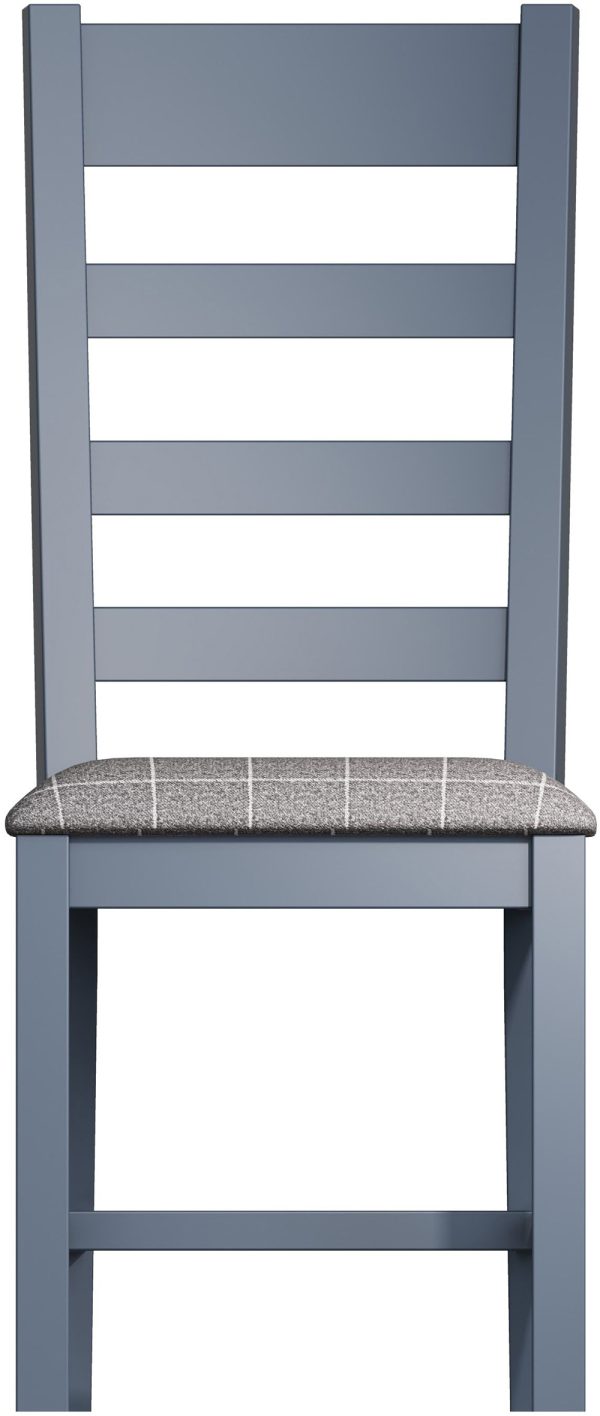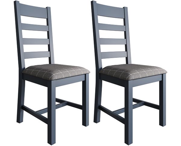 Parker Dining Blue Slatted Chairs with Fabric Seat in Check Grey
