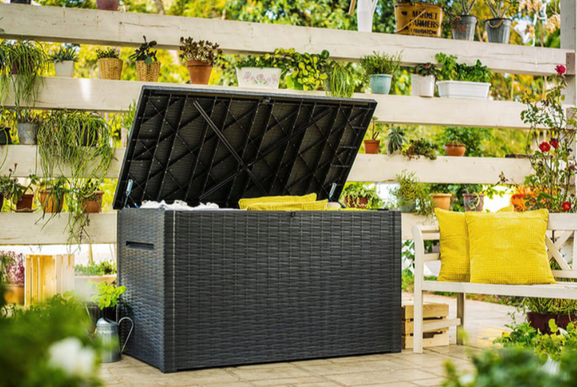 • Ideal outdoor storage box for garden tools and equipment, furniture cushions, garden games and accessories