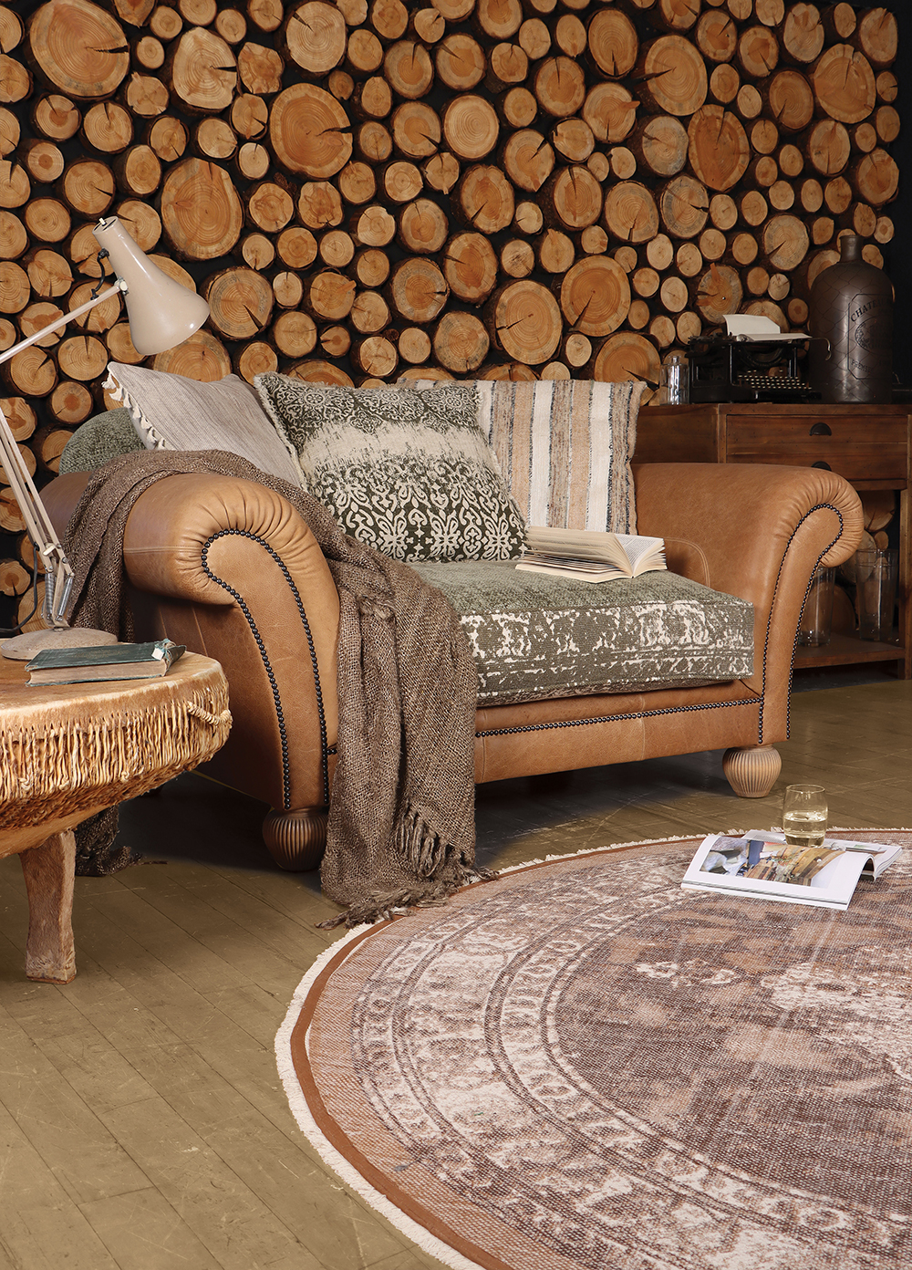 Shown In: Atacama Nutmeg Leather, Bagru Khaki & textured Chanille Sage