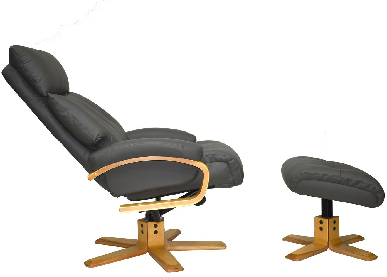 Global Furniture Alliance Vienna Chair in Charcoal Leather The Vienna Swivel Recliner & Footstool stands out as a piece that brings elegance and sophistication to any room. Available in a variety of versatile fabrics and leathers, it effortlessly complements any décor.