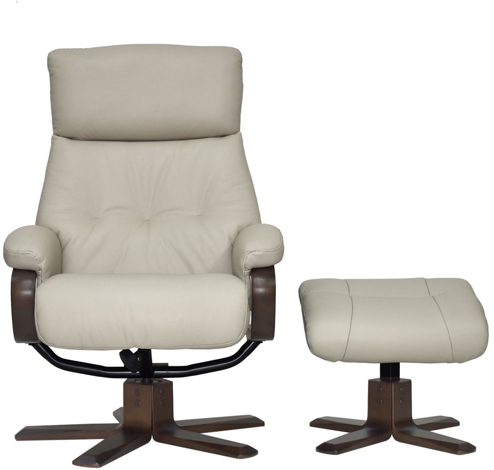 Global Furniture Alliance Vienna Chair in Mushroom Leather The Vienna Swivel Recliner & Footstool stands out as a piece that brings elegance and sophistication to any room. Available in a variety of versatile fabrics and leathers, it effortlessly complements any décor.
