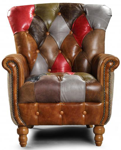 Vintage Sofa Company Alderley Patchwork Chair The Alderley range showcases a patchwork styled chair design with a deep seating base and stately proportions. The range offers superior comfort and style. Showcased here in an eye-catching Harlequin Patchwork leather.