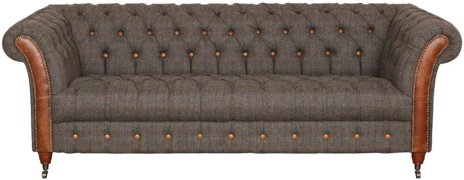 Vintage Sofa Company Chester Club 3 Seat Sofa The Chester Club range features a classically styled chesterfield design with a deep seating base to offer superior comfort and style. Showcased in genuine Harris Tweed ‘Moreland’ fabric, with Cerato Brown aniline leather, the Chester Club is sure to become a future heirloom. Also available is a matching Club Chair and a smaller two-seat sofa.