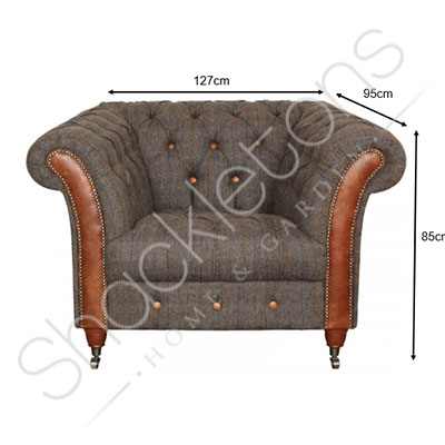 The Vintage Sofa Company Chester Club Chair features authentic Harris Tweed fabric with genuine leather arm and hand button details. Solid oak framework gives the range unnmatched durability and the chesterfield shape looks equally at home in either a country house or modern home.