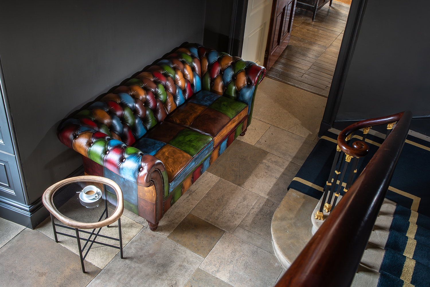 A contemporary statement with classic roots, the Chester Croft 2 Seater is crafted from hand-rubbed Italian leather patchwork, creating a luxurious blend of vintage hues. With deep buttoning, rolled arms, and hand-turned oak legs, it stands as a bespoke centerpiece for enduring, elegant interiors.