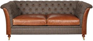 Vintage Sofa Company Granby 2 Seat Sofa The Granby Collection is a modern take on the traditional chesterfield styled sofas and chairs offering the same style but with a combination of both leather and fabric to create the perfect contrast. Showcased in genuine Harris Tweed ‘Moreland’ fabric and Cerato Brown aniline leather the Granby chair is sure to add a touch of class and style to any room! There is also a matching chair and 3 seat sofa within the Granby range