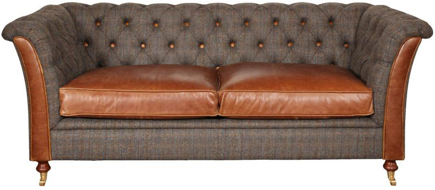 •Authentic Harris Tweed ‘Moreland’ Fabric teamed with ‘Cerato Brown’ Hide •Classic Chesterfield Styling •Solid Oak Feet with metal casters •Hand buttoned using leather faced buttons •Interest Free finance available