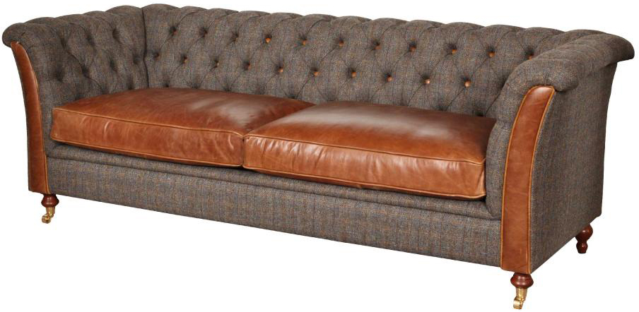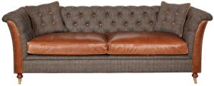 Granby 3 Seat Sofa in Moreland Harris Tweed Fabric and Leather