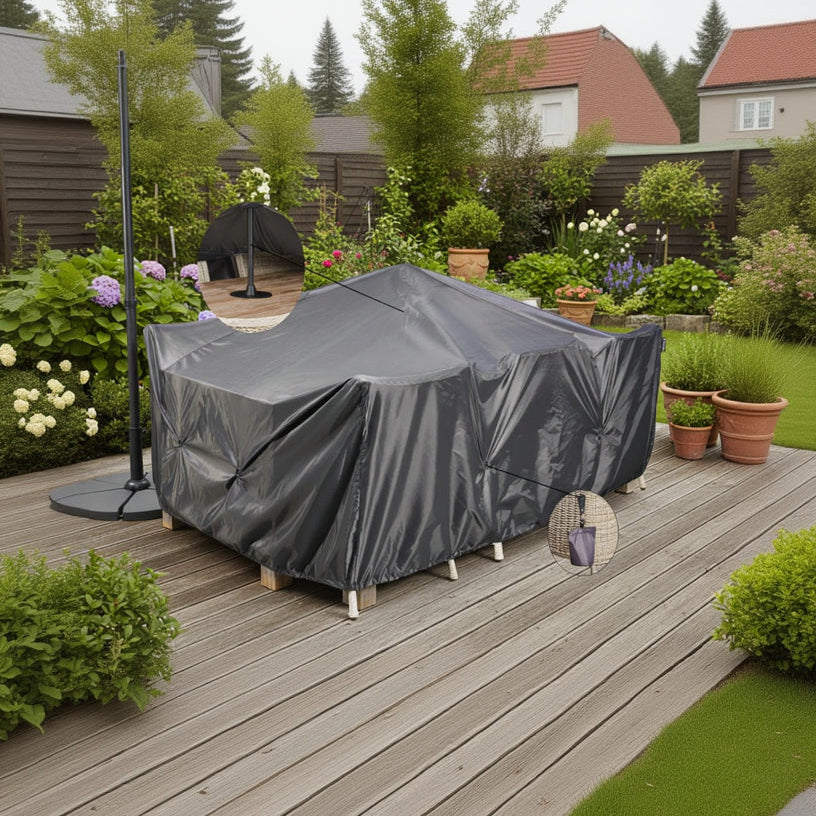 Protect your garden furniture with this AeroCover Support Pole Set, engineered to shield your outdoor investment from the elements. Crafted from breathable ripstop polyester, the water-resistant fabric actively reduces condensation while preventing mold and mildew accumulation. The lightweight design makes handling effortless, and the included storage bag keeps everything compact when not in use. Dual-stopper drawstrings deliver a custom fit for your specific setup. Measuring 24cm x 10cm x 20cm, this professional-grade cover combines durability with practicality for year-round garden protection.