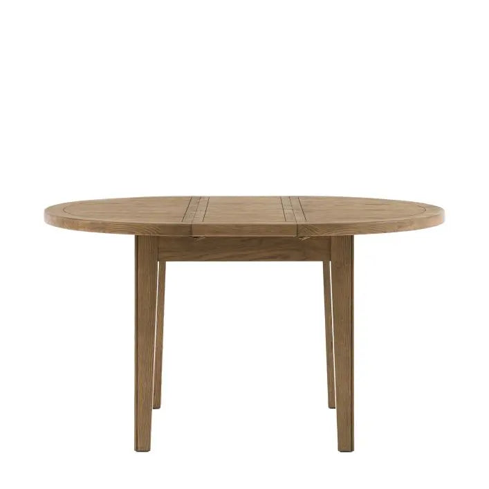 Gallery Direct Hardwick Round Extending Dining Table This classically proportioned round dining table combines timeless design with practical versatility. Crafted from oak solids and veneers with a warm natural finish, it brings understated elegance to any dining space. The ingenious extending mechanism allows seamless expansion from intimate dinners to larger gatherings, making it an intelligent investment for households that value both aesthetic refinement and functional flexibility. Perfect for those seeking a piece that adapts gracefully to evolving entertaining needs whilst maintaining its sophisticated appeal.