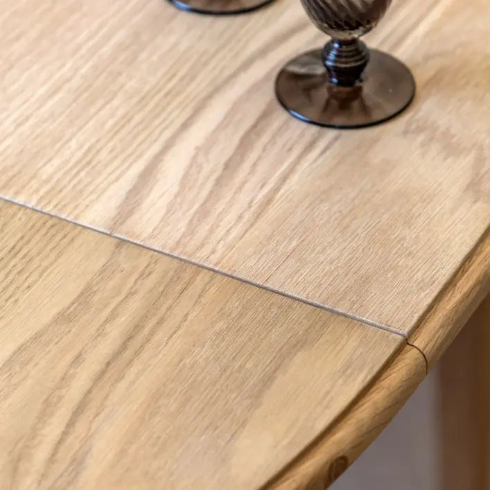 Discover timeless dining elegance with the Gallery Direct Malvern Round Extending Dining Table. Crafted from warm oak solids and veneers, this piece showcases beautiful grain detailing that brings understated sophistication to your space. The ingenious extending mechanism allows seamless transitions from intimate four-person gatherings to accommodating six guests, making it ideal for evolving family needs. Perfect for kitchens and dining areas seeking both aesthetic appeal and practical versatility, this table combines enduring style with intelligent design.