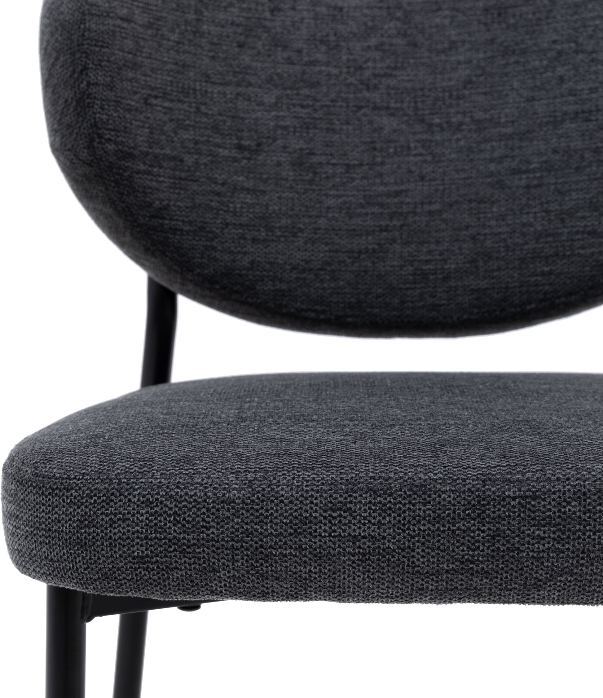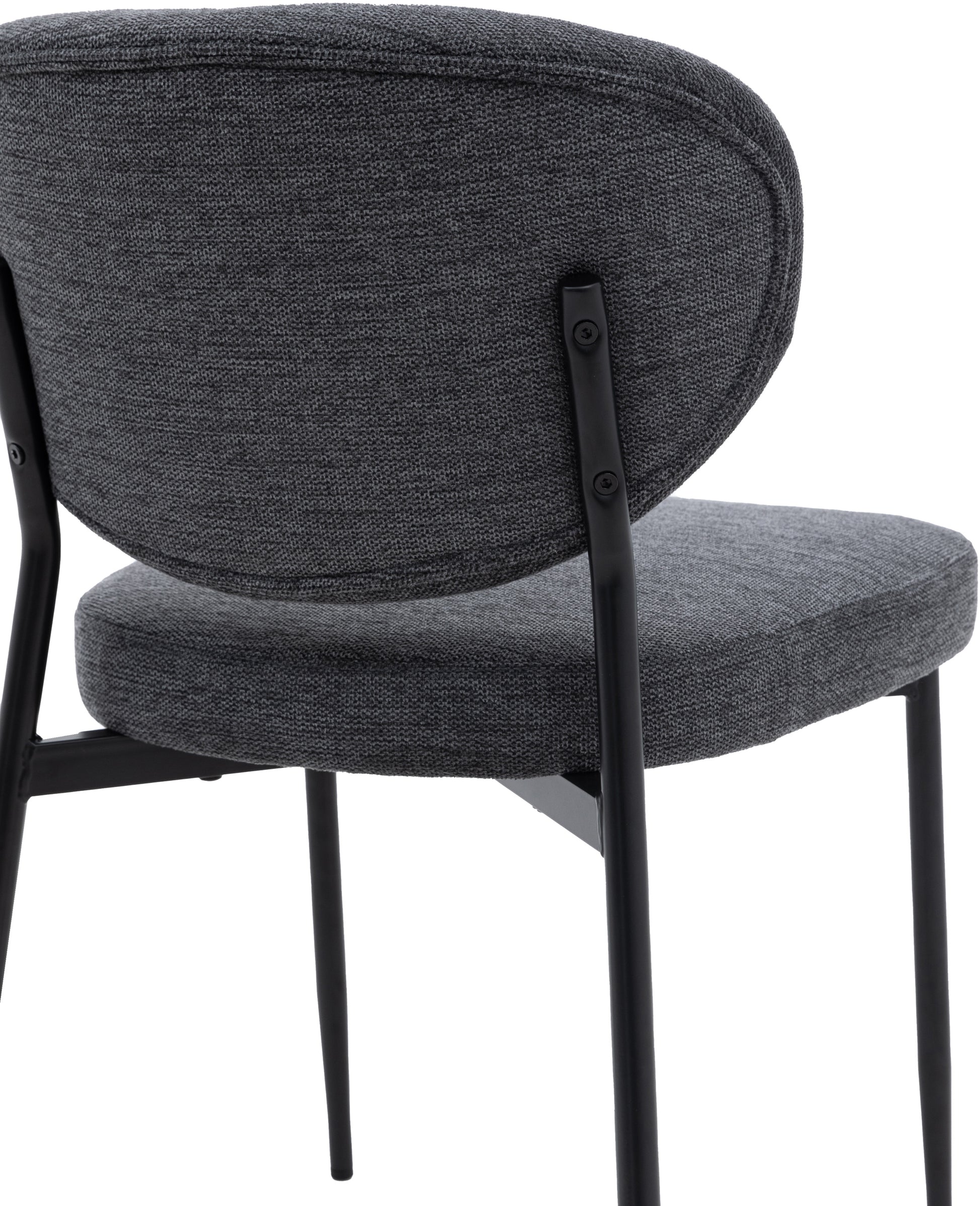 The Gallery Direct Oppo Pair of Dining Chairs combines contemporary design with everyday comfort. Each chair features a distinctive oval-shaped backrest paired with minimalist black metal legs, delivering visual impact without compromising functionality. The generously padded seat upholstered in dark grey fabric ensures sustained comfort during meals, whilst the neutral colour palette integrates seamlessly with modern and transitional interiors. An ideal choice for those seeking dining seating that balances aesthetic appeal with practical durability.