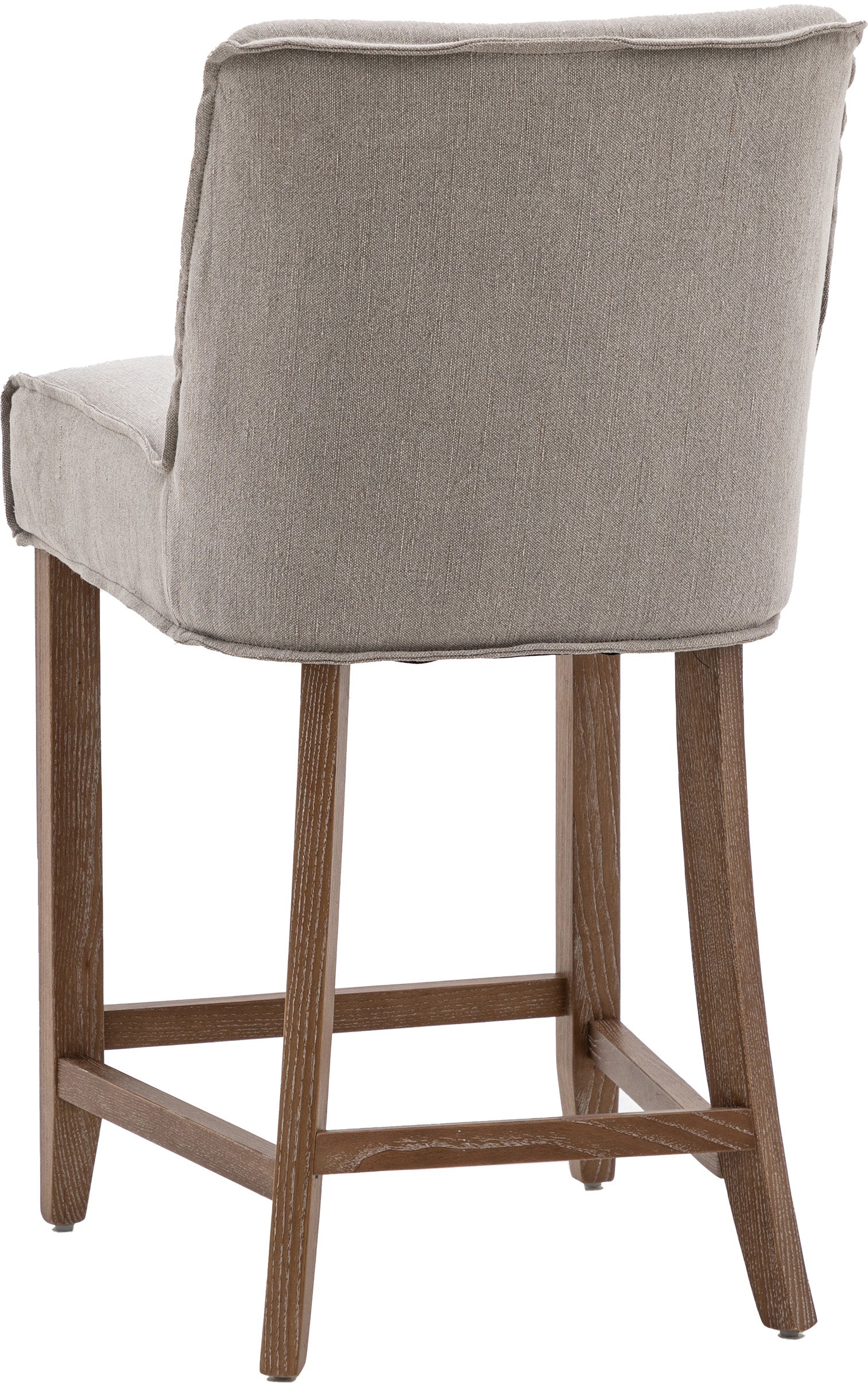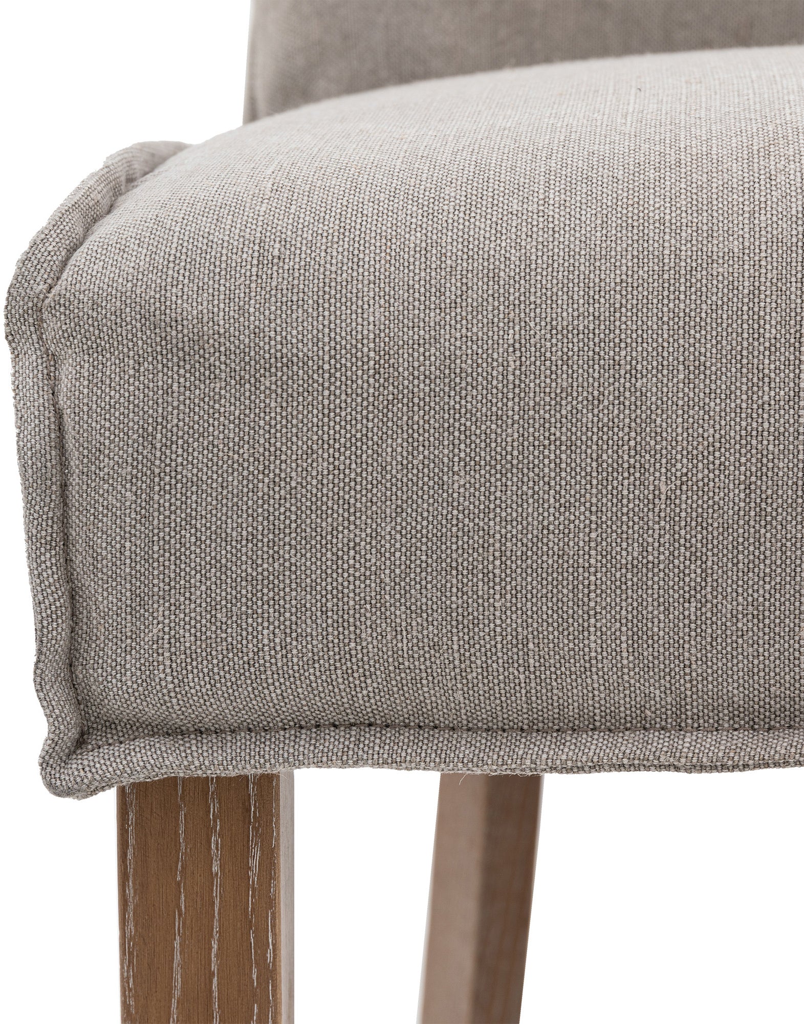 Elevate your seating with this versatile pair of bar stools that seamlessly bridge contemporary and classic aesthetics. Crafted with a refined cement grey linen upholstery, these stools deliver both comfort and visual sophistication. The gently angled wooden legs provide structural elegance whilst maintaining a light, uncluttered silhouette. Ideal for kitchen islands, breakfast bars, or dining spaces, they adapt effortlessly to modern minimalist schemes or vintage-inspired interiors. A thoughtfully designed addition to any home that values both form and function.