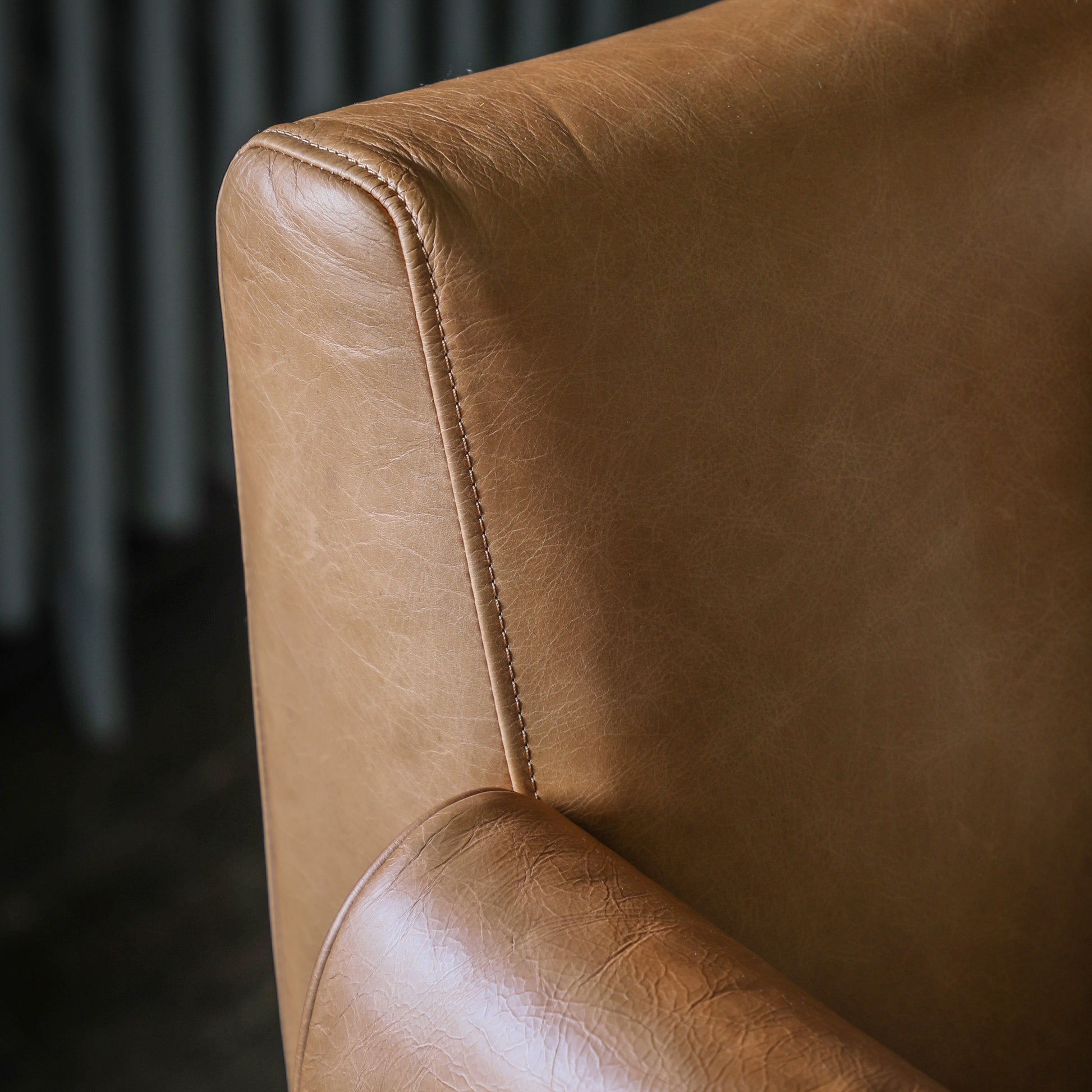 The Gallery Direct Stratford Armchair combines contemporary elegance with thoughtful craftsmanship. Rich brown leather upholstery drapes across the seat and backrest, while distinctive leather-wrapped wooden arms deliver both comfort and visual interest. Solid wooden legs ground the design with natural warmth. This piece works as a sophisticated standalone statement or pairs seamlessly with the matching sofa to create a cohesive seating arrangement. Ideal for those seeking refined style without compromising on comfort.