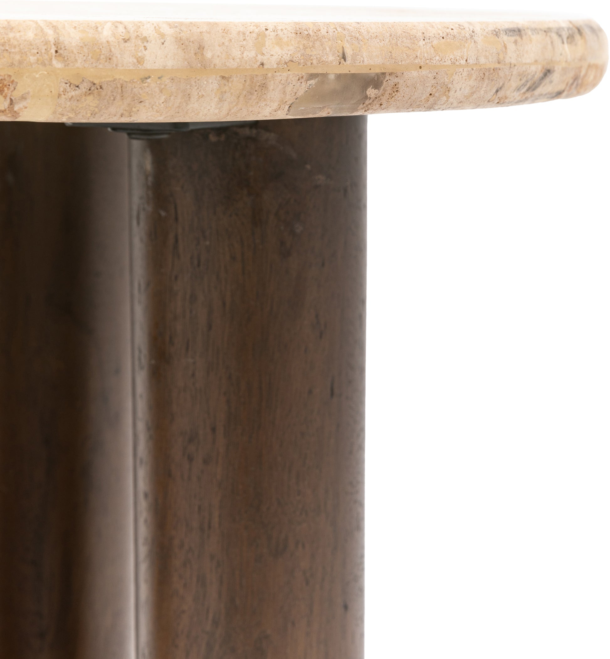 The Gallery Direct Trevi Side Table combines architectural elegance with natural materials. Featuring robust turned cylindrical legs in solid mango wood, this piece delivers substantial visual presence. The travertine stone top showcases authentic veining and texture, creating a sophisticated focal point in any interior. Each table is unique due to the natural variation inherent in stone finishes. Coordinate with complementary pieces from the Trevi collection to establish a cohesive design scheme throughout your space.
