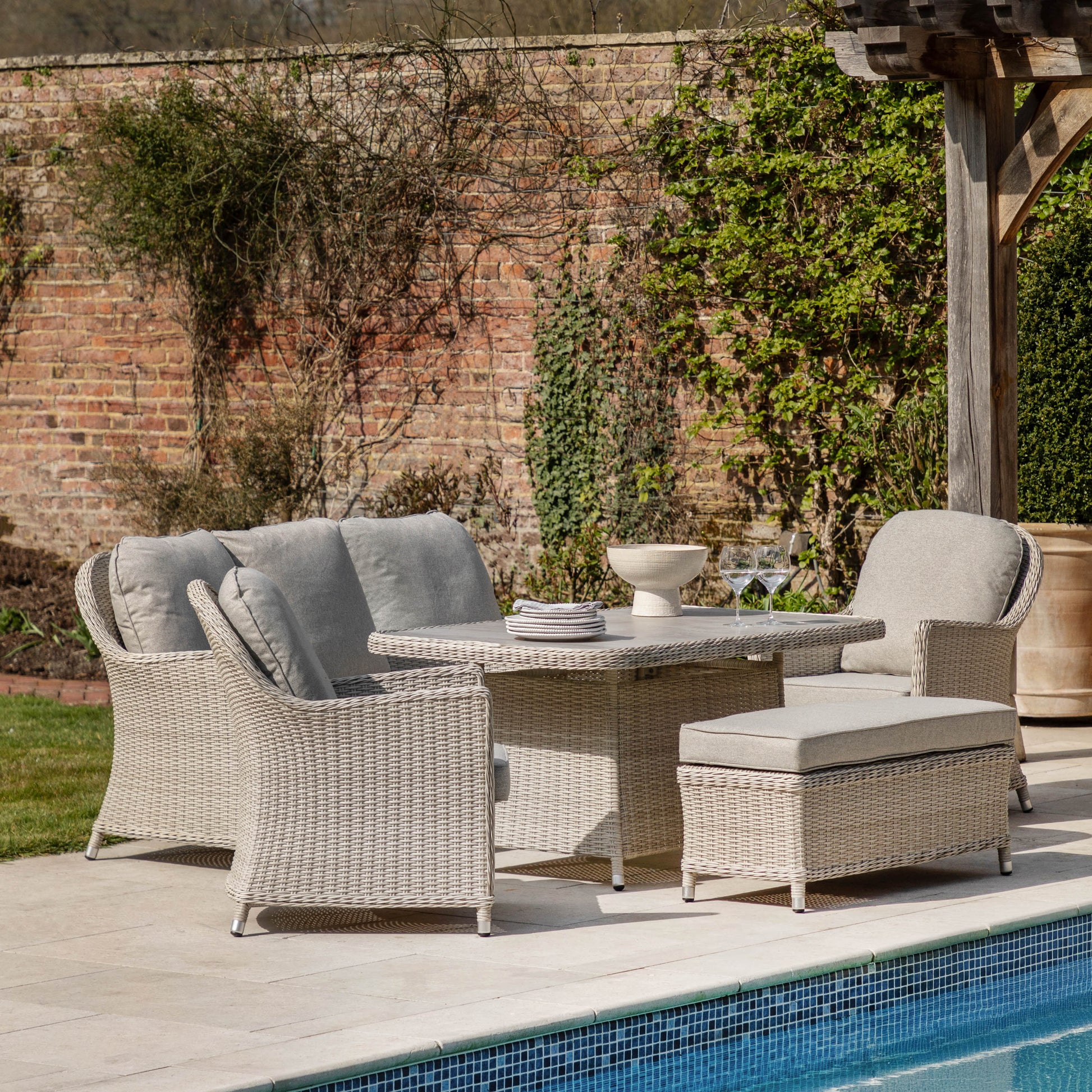 The Gallery Garden Holton Rectangle Dining Set combines natural rattan construction with generously padded cushions to create an inviting outdoor entertaining space. Its carefully curated neutral tones integrate seamlessly with existing garden aesthetics whilst maintaining contemporary appeal. Engineered for dual functionality, this set transitions effortlessly between casual dining and relaxed seating arrangements, maximising the utility of your outdoor environment. The robust rattan framework ensures durability against the elements, whilst the plush cushioning delivers sustained comfort during extended use. Ideal for those seeking to establish a refined outdoor living area that balances style with practical versatility.