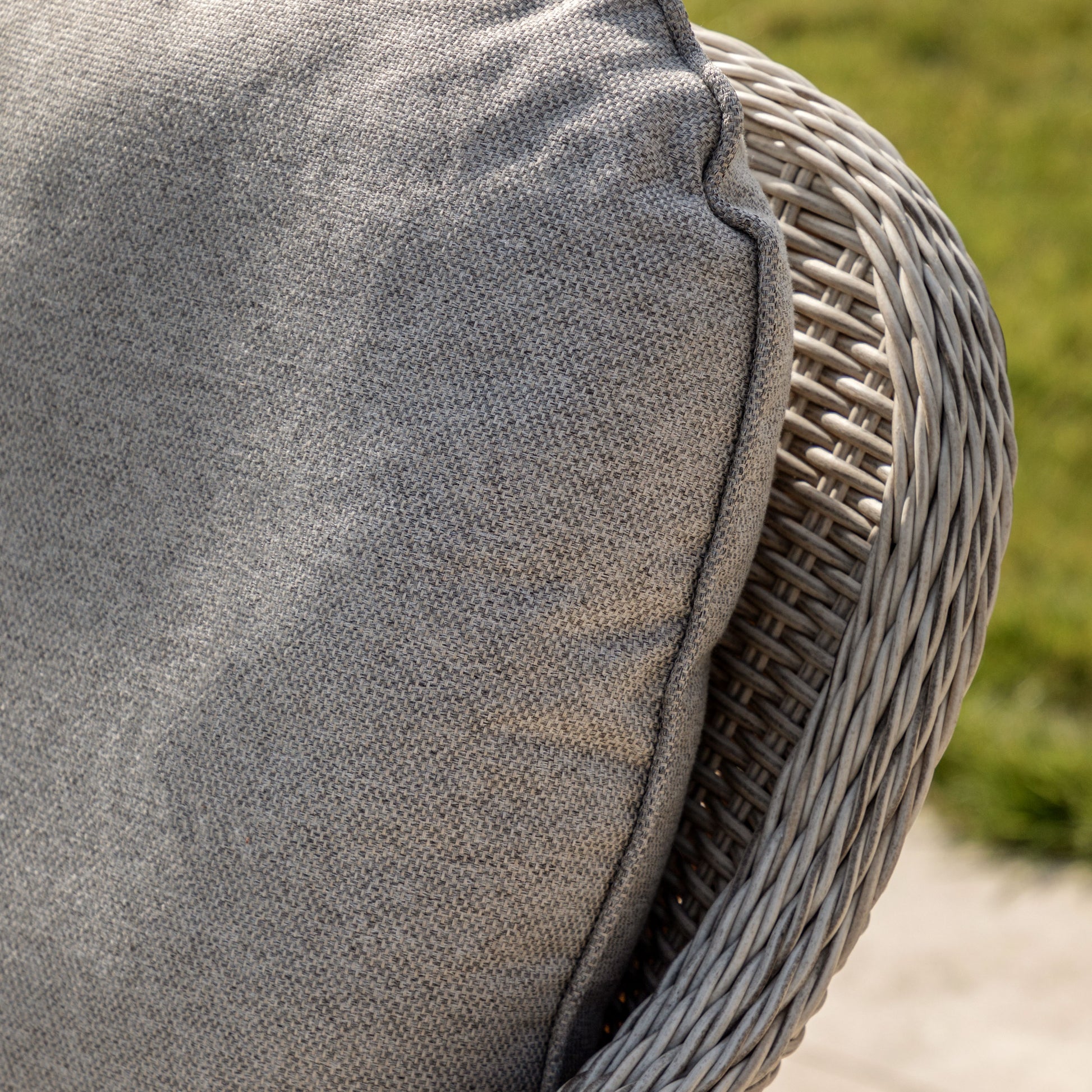 Cushions are shower resistant only, not waterproof, and must not be left out in the rain or wet conditions, as this will cause damage and staining due to the fire-resistant treatment applied. Cushions should be stored away when not in use to keep them dry.