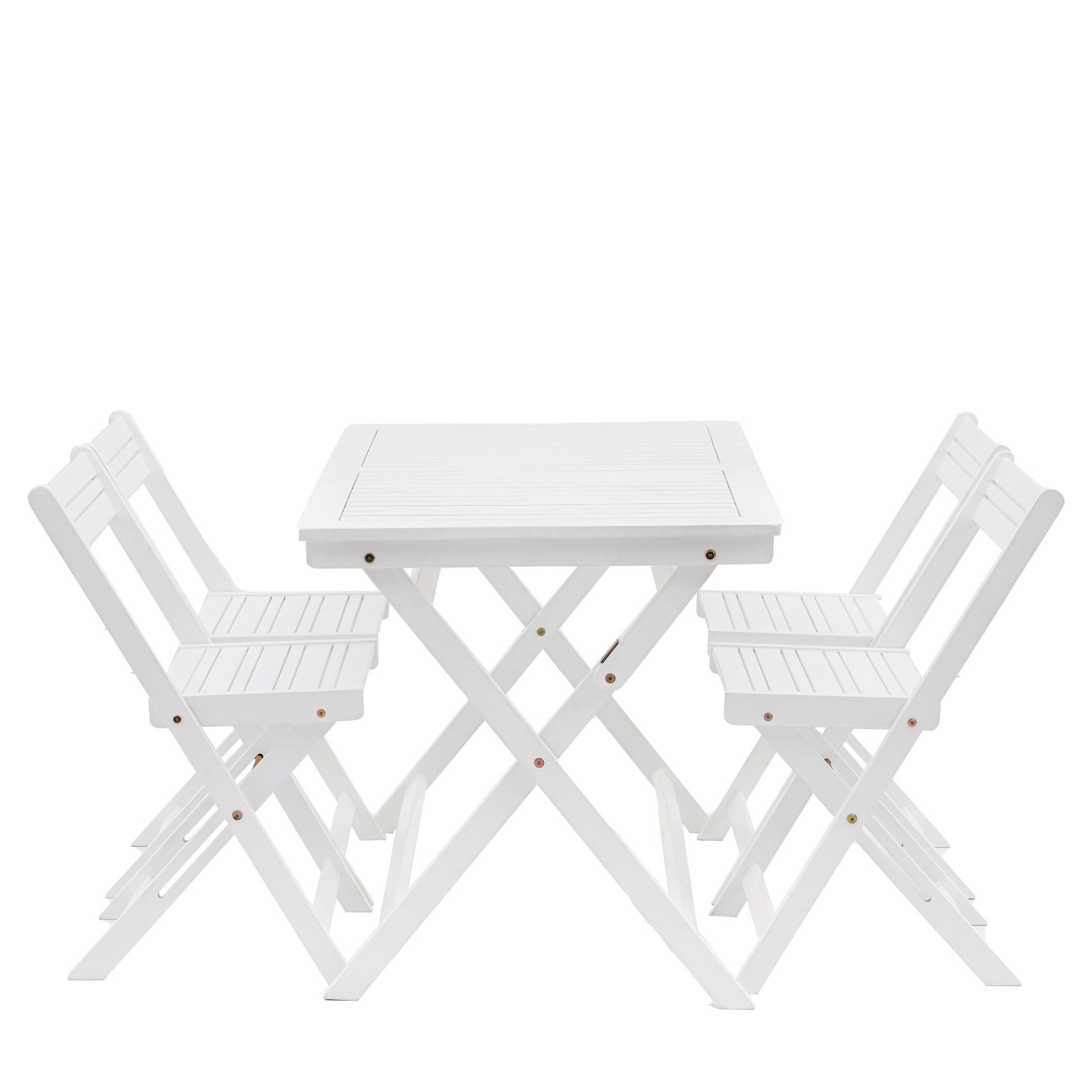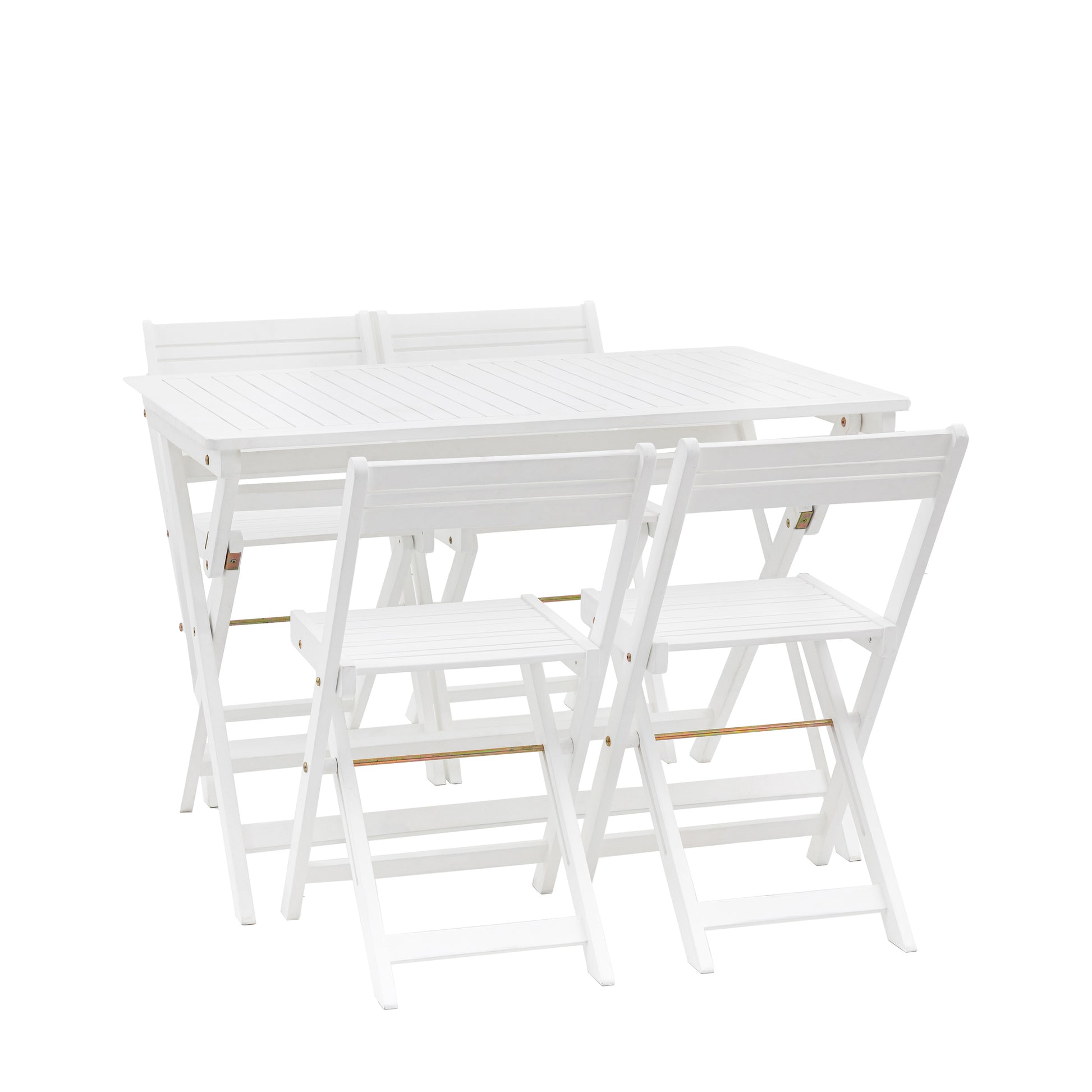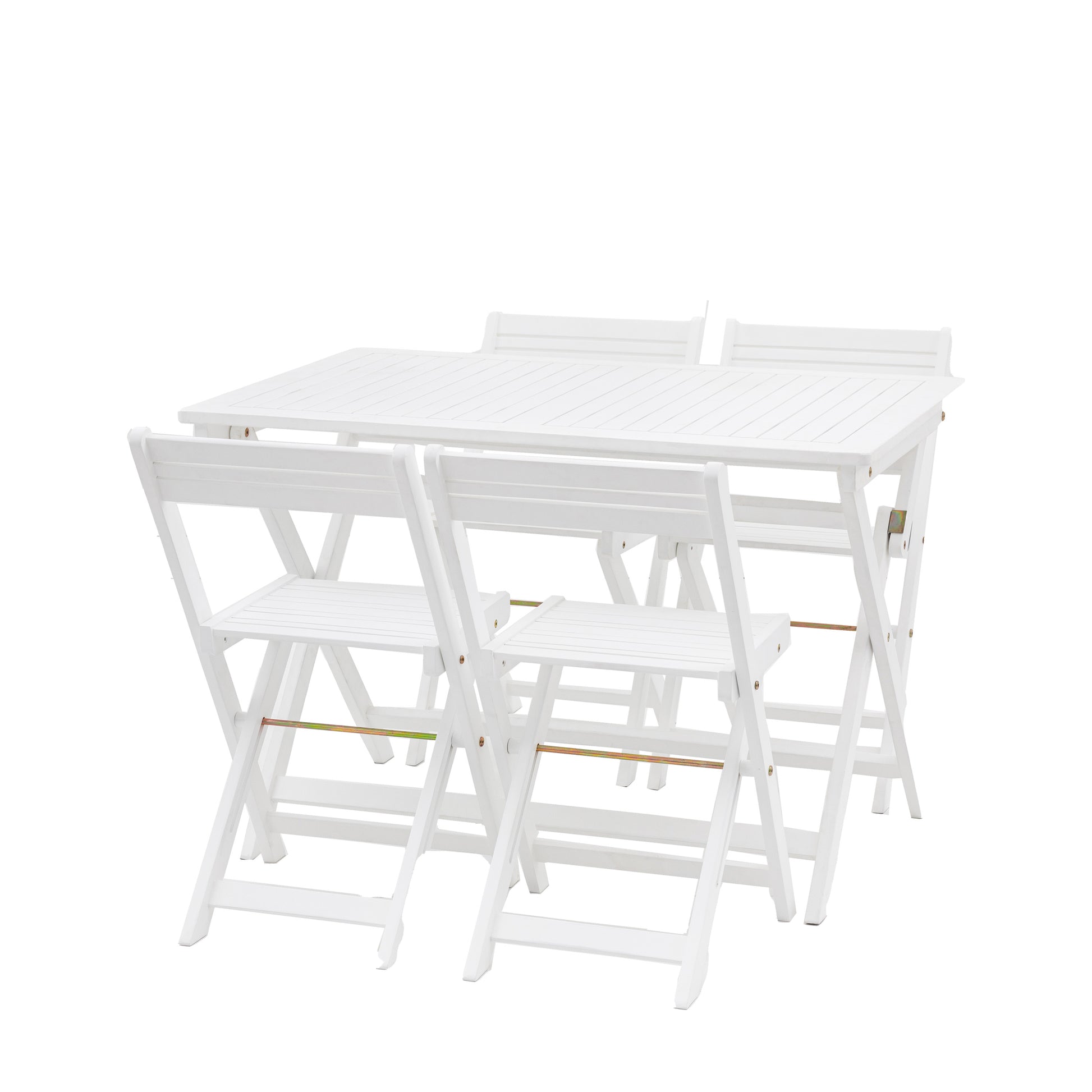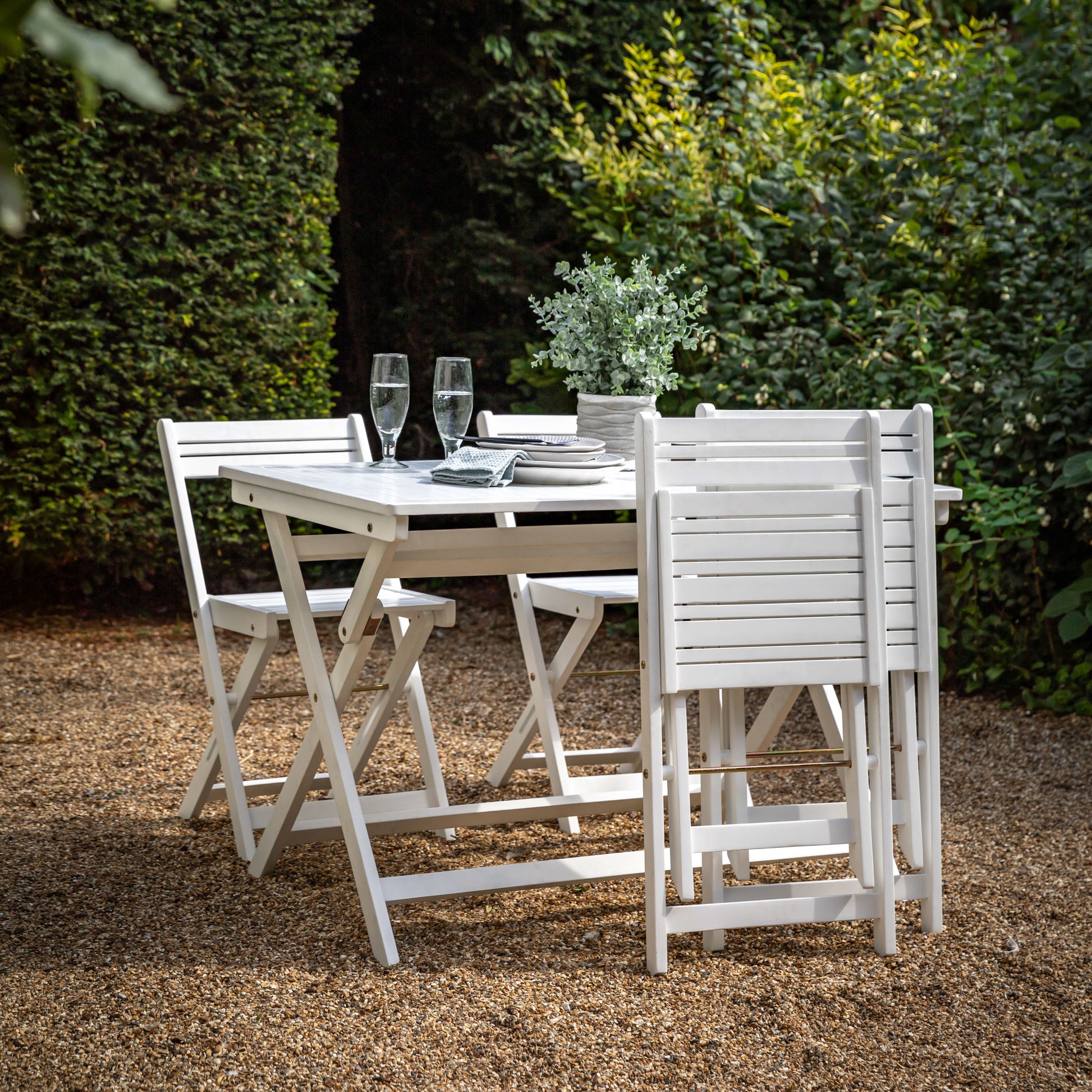 The Gallery Garden Lindos Foldaway Dining Set combines refined aesthetics with practical functionality. This elegant white ensemble features a slatted dining table and four matching chairs, all engineered to fold compactly for convenient storage or transport. Ideal for those seeking versatile outdoor furniture that doesn't compromise on style, this set transitions effortlessly from entertaining space to tucked-away convenience. Perfect for gardens, patios, or compact living situations where space efficiency matters.
