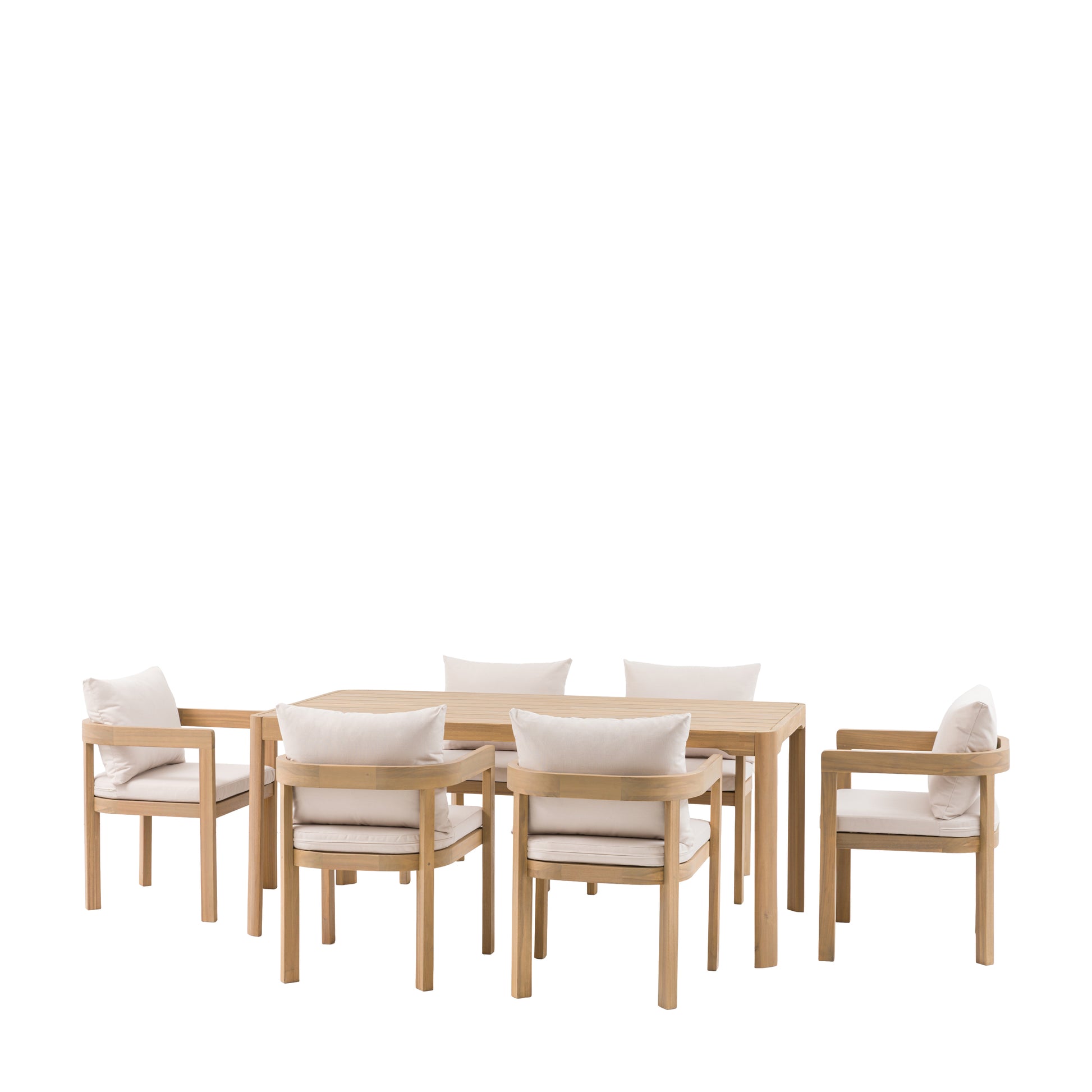 Elevate your outdoor entertaining with the Gallery Garden Madeira 6 Seater Dining Set. This sophisticated lounge collection combines Acacia wood's natural durability with contemporary design, featuring a 2-seater sofa, pair of armchairs, coffee table and side table. Graceful curves and refined lines create visual interest, whilst generously padded cushions deliver exceptional comfort for extended relaxation. Perfect for creating a stylish garden retreat that balances modern aesthetics with practical functionality.
