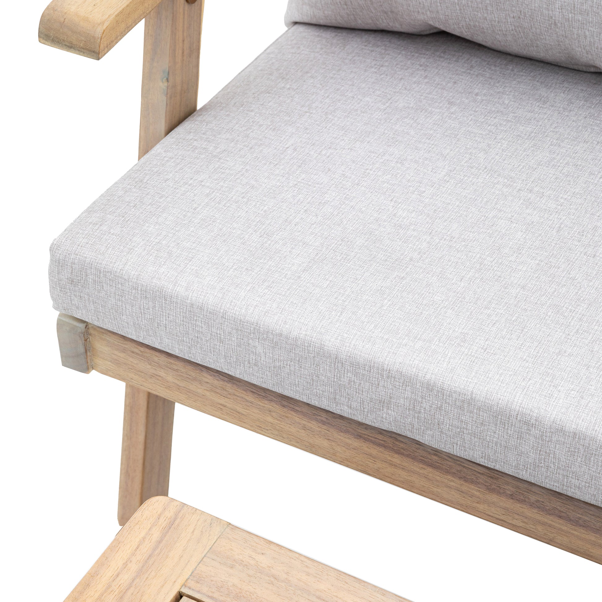 Transform your garden into a sophisticated outdoor retreat with the Gallery Garden Marina Lounge Set. This four-piece collection features a 2-seater sofa and pair of armchairs, each showcasing elegant woven rope detailing and plush grey cushions for comfort and style. The accompanying slatted coffee table completes the ensemble. Crafted from premium Acacia wood with a refined finish, the set combines durability with aesthetic appeal. When not in use, both the armchairs and sofa fold flat for convenient storage, making this an ideal solution for maximising your outdoor space without compromise.