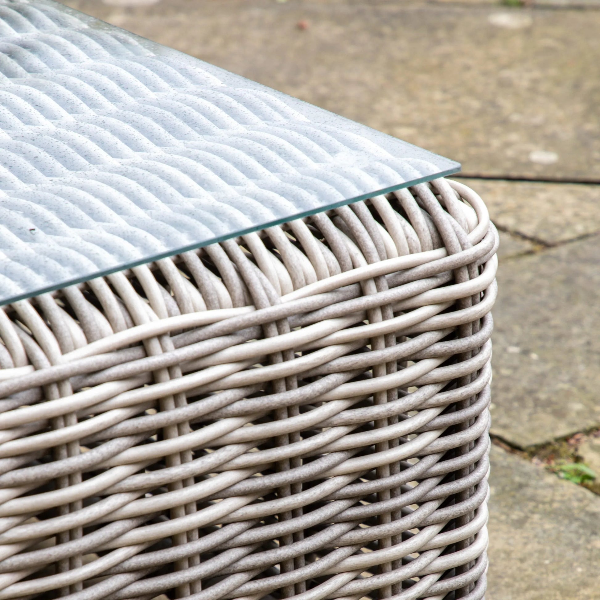 This stunning corner lounge set features wide large seats and extra thick cushions combined with the 9mm full rounded weave rattan to create stylish chunky pieces. The cushions are showerproof and the coffee table has a glass top for added practicality. It includes a corner sofa and a coffee table, and all the pieces have aluminium frames. A 1-seater module is available which can be used with the corner sofa to extend it, and there is a lounge set with a straight sofa rather than corner.