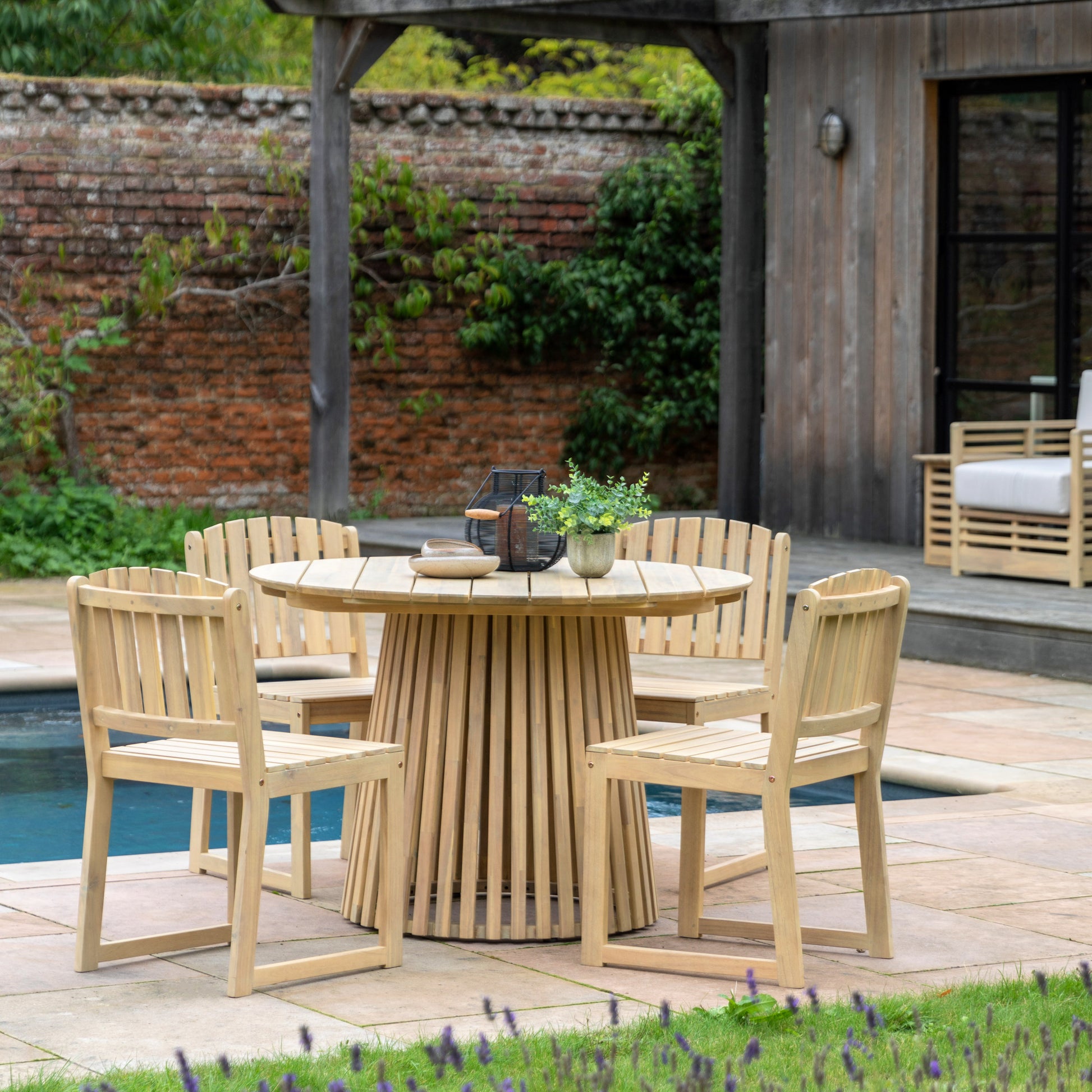 Elevate your outdoor entertaining with the Gallery Garden Rialto Round Dining Table. This sophisticated four-seater features a circular acacia wood top paired with an architecturally striking slatted base that commands attention. Built from durable acacia wood, it withstands the elements whilst maintaining its natural warmth and character. The generous circular design accommodates intimate dinners and casual gatherings with ease, making it an ideal centrepiece for any garden or patio. A refined choice for those seeking both aesthetic appeal and practical functionality in outdoor dining furniture.