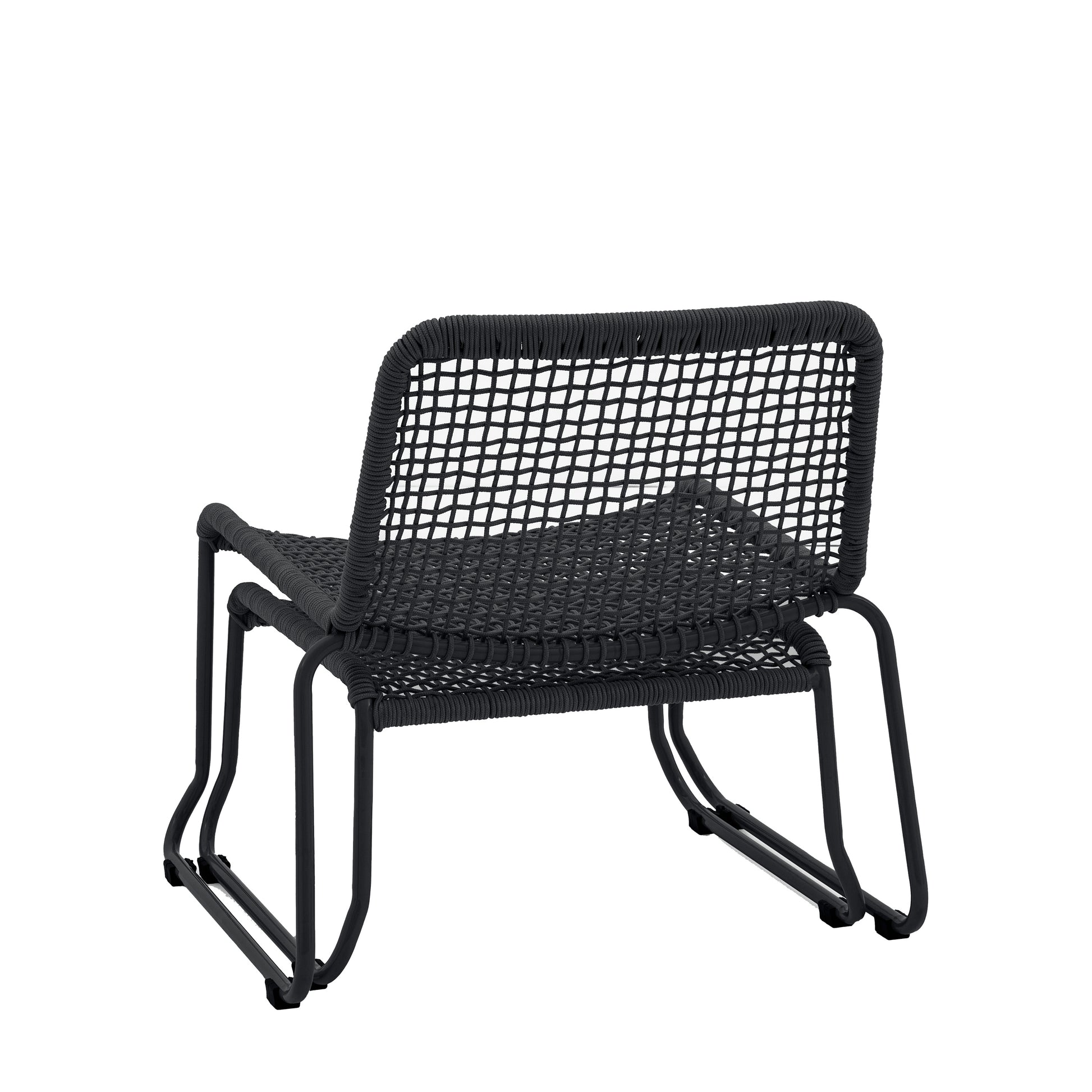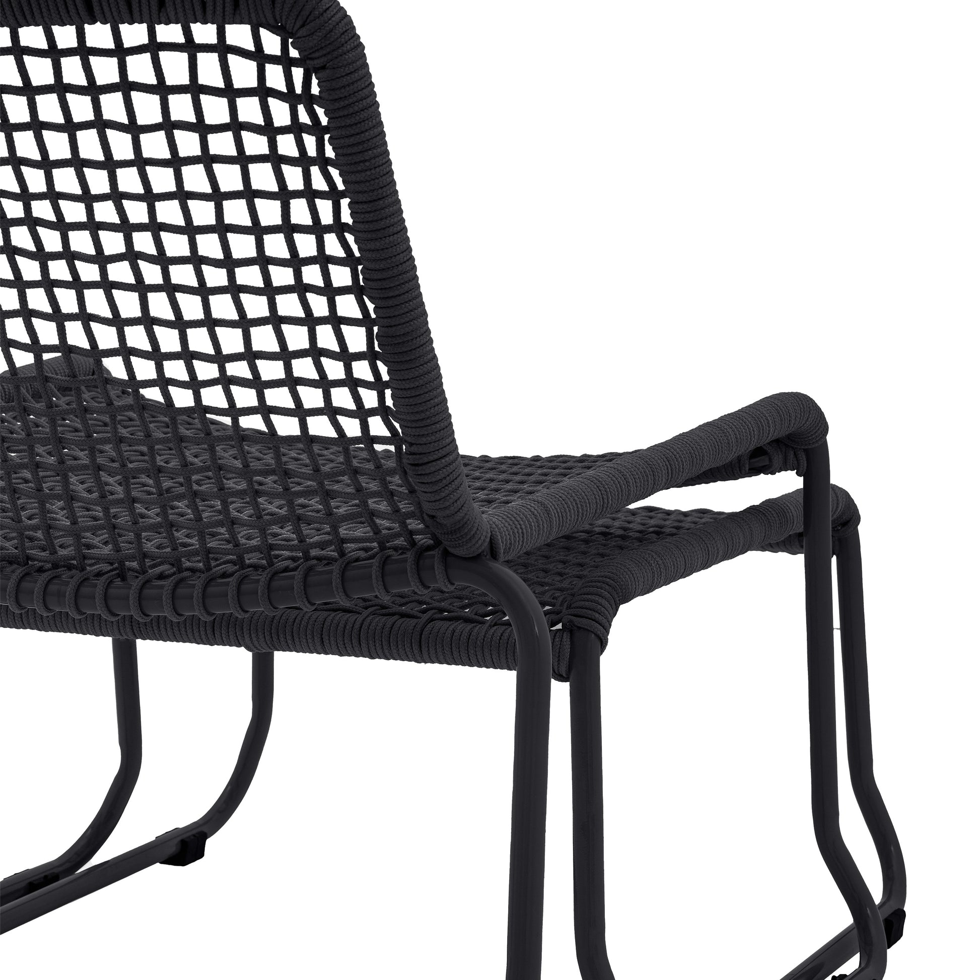 Transform your garden into a sophisticated retreat with the Gallery Garden Sassano Lounge Chair. This striking black lounger combines contemporary design with practical comfort, featuring a robust steel frame paired with intricately woven outdoor rope detailing on the seat and backrest. The included footstool extends the lounging experience, allowing you to fully recline and unwind. Built to withstand the elements, this statement piece delivers both durability and style, making it an ideal focal point for summer entertaining or peaceful afternoons outdoors.