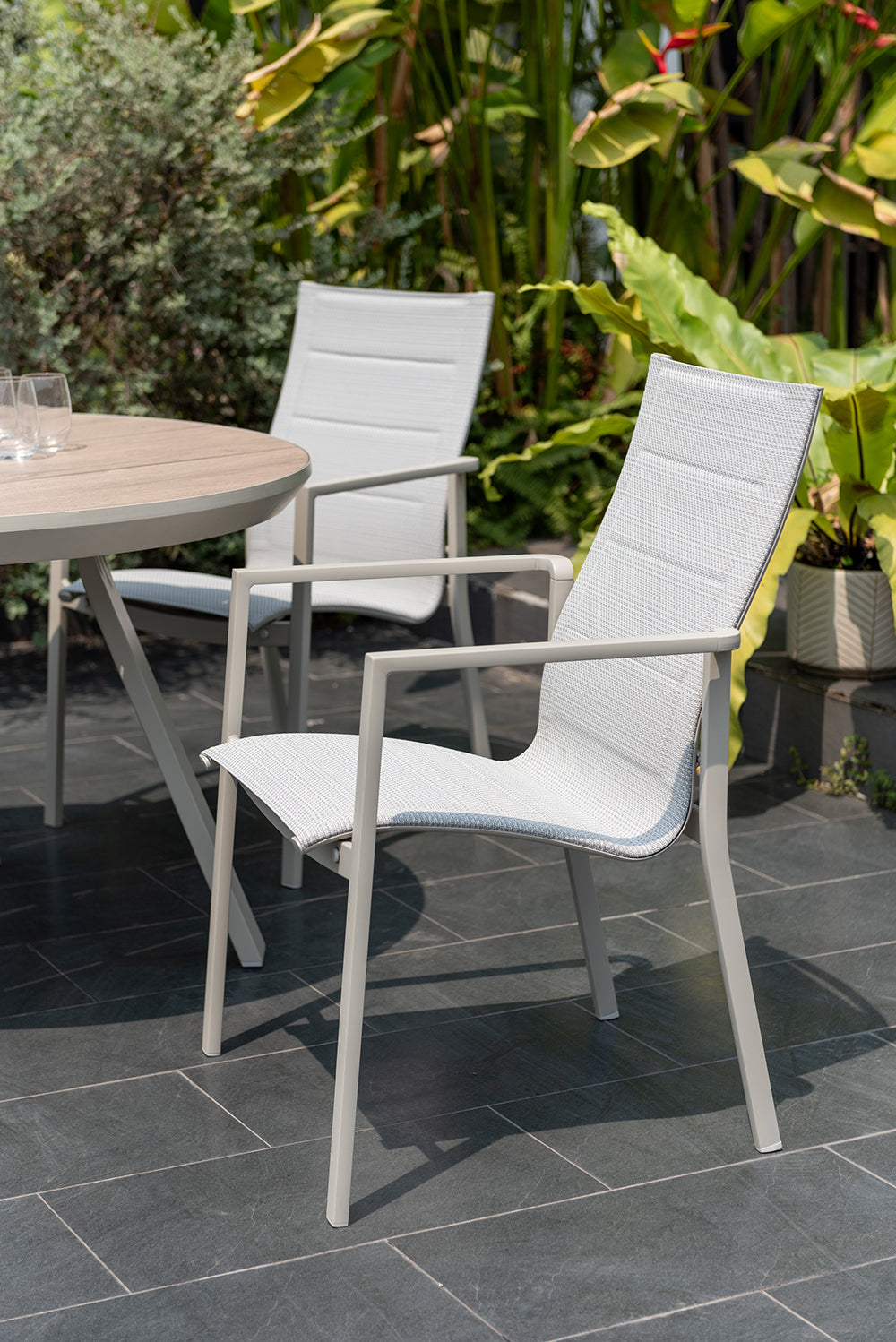 The LifestyleGarden Urbanite Panama Sand 4 Seat Round Padded Dining Set brings contemporary elegance to outdoor entertaining. This expertly crafted collection features a sleek round table paired with four generously padded dining chairs, designed for comfort during extended gatherings. Constructed from premium, weather-resistant materials, the set withstands the elements whilst maintaining its refined aesthetic. The minimalist design complements modern urban spaces, whether positioned on a patio, balcony, or terrace. Ideal for those seeking functional outdoor furniture that doesn't compromise on style, this dining set transforms your exterior space into a sophisticated entertaining area.