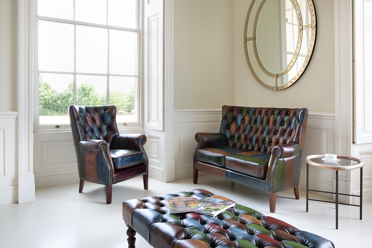Meticulously handcrafted in Britain by master upholsterers using traditional techniques perfected over generations. Each sofa features a robust hardwood frame for lasting durability, hand-tied springs for superior comfort and support, and premium rub-off leather carefully selected for its beauty, suppleness, and ability to age gracefully. The expert button tufting and careful panel selection ensure every piece meets the highest standards of quality and craftsmanship.