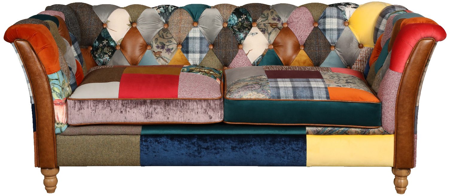 Make a bold, unforgettable statement with the Vintage Sofa Company Rutland 3 Seater Sofa. This extraordinary piece combines classic Chesterfield elegance with exuberant patchwork design, featuring deep button tufting, vibrant multi-coloured fabric and leather panels, signature scrolled arms, and turned wooden legs. Perfect for living rooms, eclectic interiors, and design-conscious homes, the Rutland sofa brings artistic flair and exceptional comfort now available with fast track delivery for those who can't wait to transform their space.